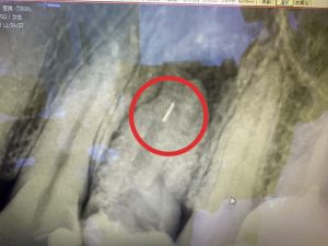前医で根管治療時に使用する器具が折れてしまい根管の先の方で刺さった状態です。